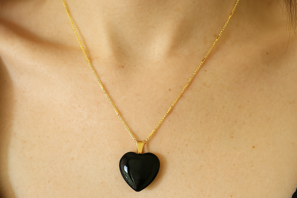 Collar Corazón Negro con Cadena Dorada ensamblado a mano